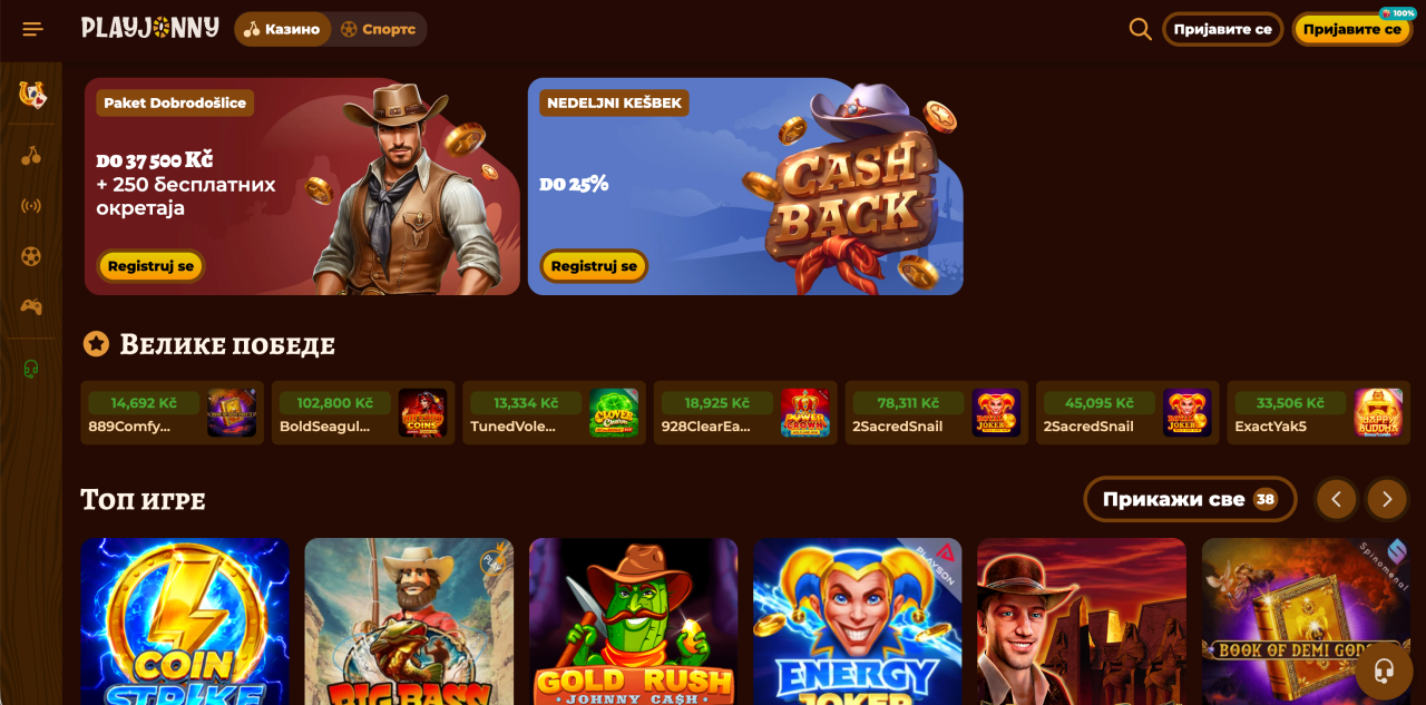 PlayJonny rs je potpuno integrisan gejming centar na kojem se igrači mogu registrovati, uplatiti sredstva i birati između kazino igara, sportskog klađenja i opcija uživo. Platforma radi stabilno i jednostavna je za upotrebu.